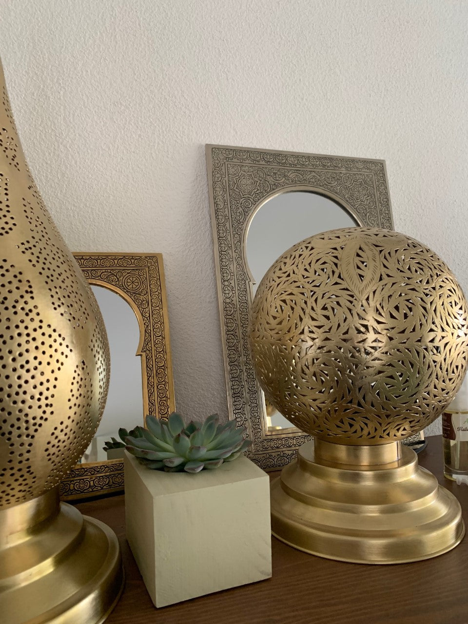 Unser marokkanischer Hingucker „Marrakech“ ist eine wunderschöne orientalische Leuchte, die von Hand und mit viel Leidenschaft gefertigt wird. Die Tischlampe in klassischer Kugelform wirkt durch das echt vergoldete Messing besonders edel und entführt dich auf eine stimmungsvolle Reise in den Orient.